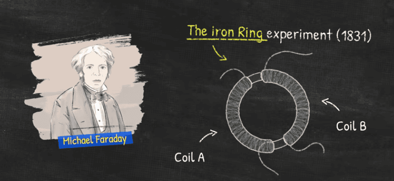 Well, this was an experiment performed by Michael Faraday in 1831 and he noticed that… nothing happens. But, then he realised that when the circuit was turned on or off, it did induce a voltage and therefore current, in the second coil.