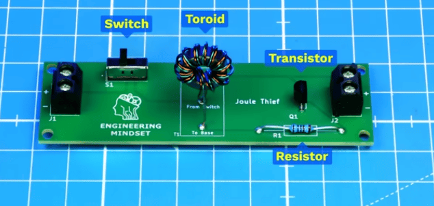 In this article we explain how a simple Joule Thief circuit boosts low voltage using inductors, transistors, and Faraday’s law. Learn how it works, why it works, and how to build one yourself with a DIY kit or custom PCB. Learn how transistors, inductors, toroid transformers, LED and resistors work.